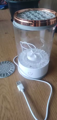 Vår innovativa enhet använder en kraftfull snurrmekanism för att rengöra borstar snabbt och effektivt.